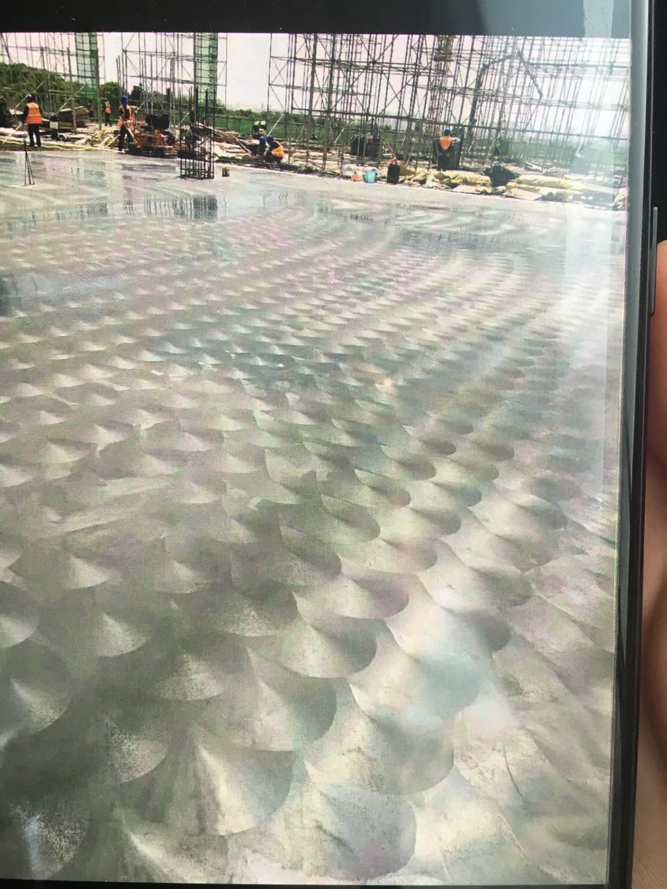e)适当使用人力和设备对混凝土做快速抹面,磨光;